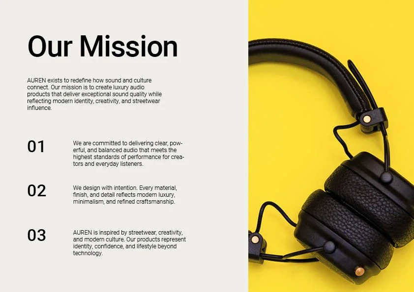 AUREN is a modern luxury audio brand created for those who value sound, design, and cultural expression. Inspired by streetwear and minimalist aesthetics, AUREN delivers high-quality audio through refined materials and bold, timeless design.