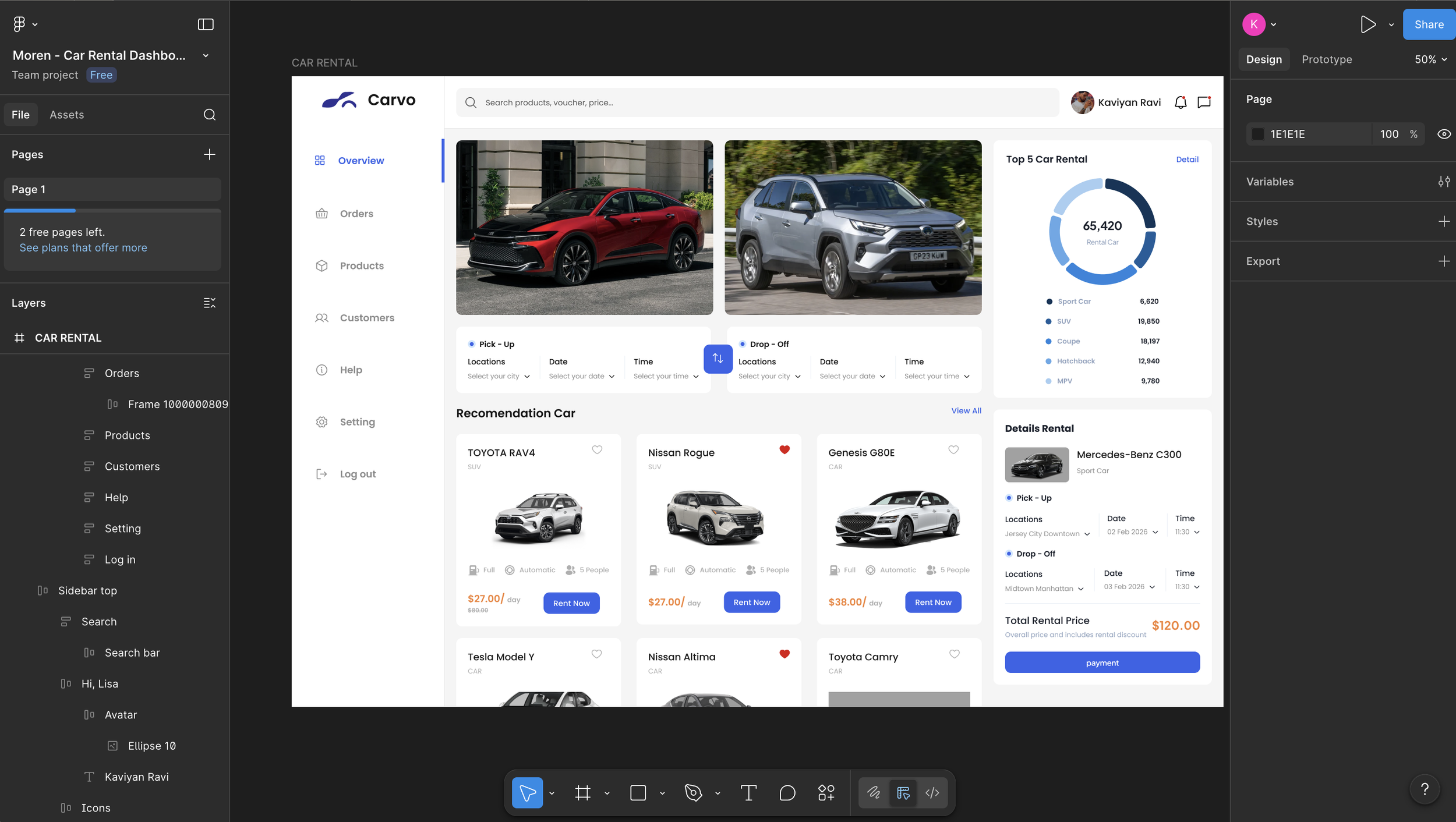 Carvo is a UI concept for a car rental platform that combines real time availability, pricing insights, and seamless payments in one intuitive dashboard.