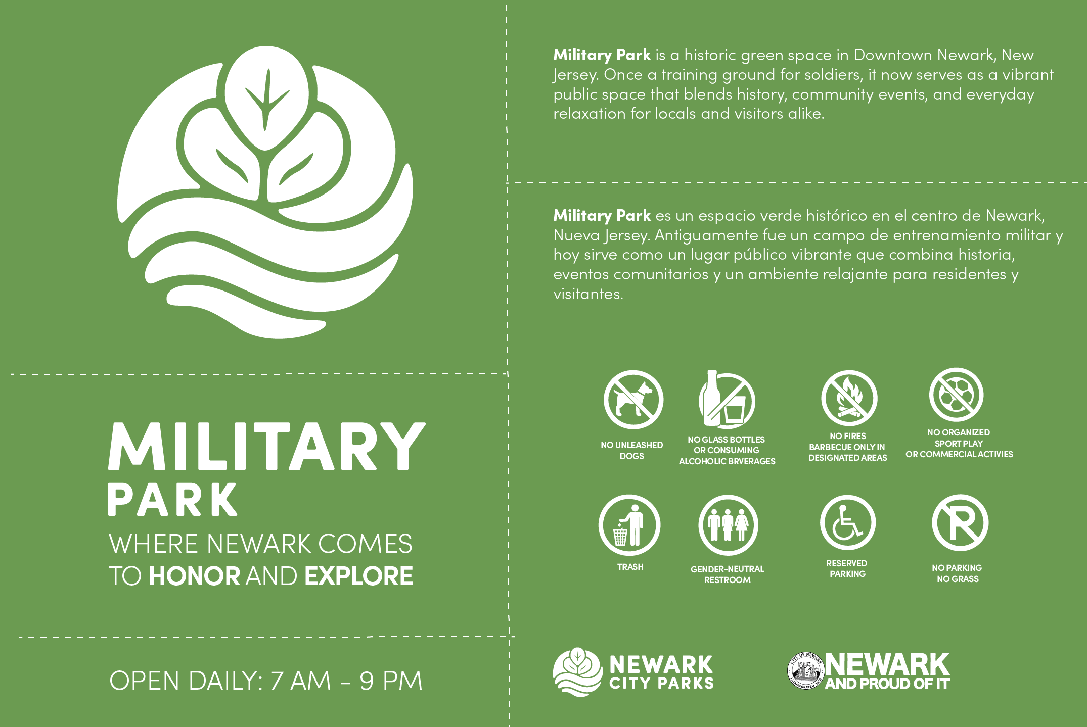 Designed signage as part of a collaborative rebrand for the Newark City Parks Foundation. My work supported a citywide campaign across Newark’s five downtown parks, helping create clear, welcoming visual touchpoints that reinforce community, navigation, and shared public space.